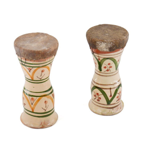 Découvrez l'artisanat marocain authentique avec ces superbes taârija traditionnelles. Chaque pièce est unique, peinte à la main avec des motifs vibrants et ornée de tressages colorés, offrant à la fois un instrument de musique riche en histoire et un magnifique objet de décoration.